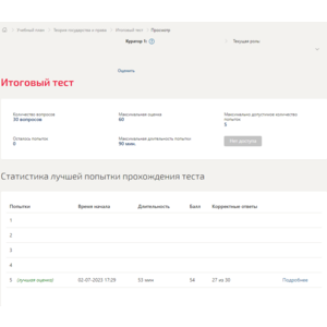30 вопросов с ответами. Итоговая оценка 73/100 баллов